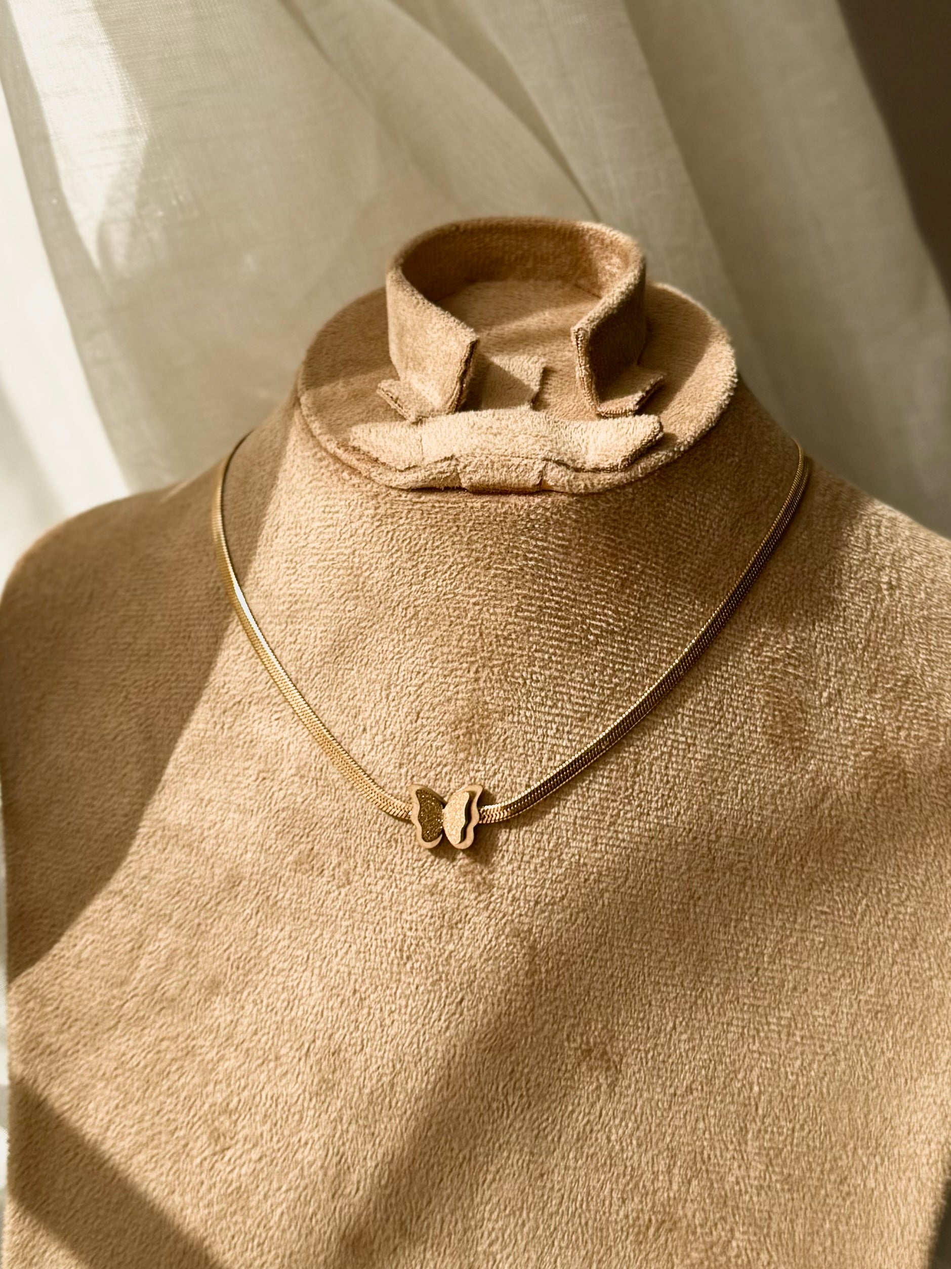 Glittery Butterfly Stainless Steel Necklace