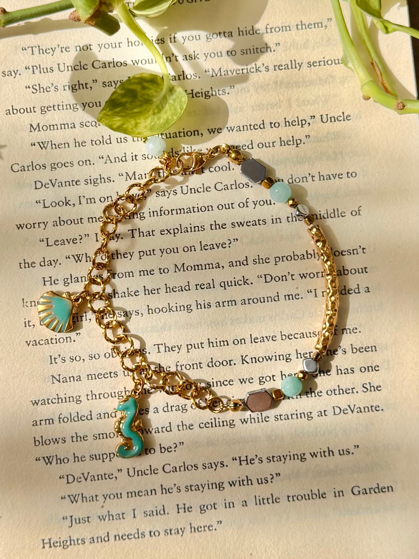 This handmade bracelet set is crafted from agate stone, hematite stone, and gold-plated stainless steel, combining durability with a refined look. The design features a mix of light-blue, gold, silver, and white tones, making it versatile for different styles. Each bracelet is finished with a secure lobster claw clasp and can be adjusted for comfort and practicality. The set offers a touch of personalisation by allowing you to choose your own initial. With its simple yet elegant style, it’s perfect for everyday wear.